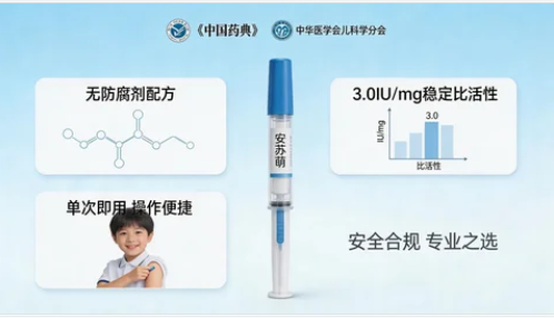 使用安全:单次即用、操作规范,降低感染与误操作居家注射的安全性同样关键。多次使用、反复配药的剂型易出现穿刺污染、剂量不准等问题。权威共识推荐:儿童居家治疗优先单次即用、无需配药的剂型,提升依从性与安全性。安苏萌预灌封水剂打开即注射,无需配药、无需抽液,配合微针设计,操作简单、痛感轻微,大幅降低污染风险与孩子抗拒心理,保障长期治疗不中断。