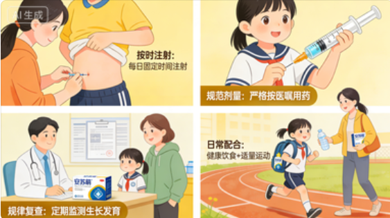 最后提醒家长,生长激素治疗的成功,一半靠药物,一半靠坚持。长期依从性不是一句口号,而是每天的按时注射、规范剂量、规律复查,以及日常的科学配合。选择安苏萌这类安全稳定、操作便捷的产品,做好长期依从,才能帮孩子稳步追赶身高,摆脱身高焦虑,实现理想身高。