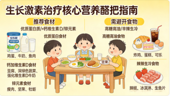 核心原则:生长激素治疗期间,营养搭配的关键是“精准、均衡、适配”,无需盲目进补,重点补充3类核心营养,同时避开2类禁忌食物,让生长激素更好地发挥作用。