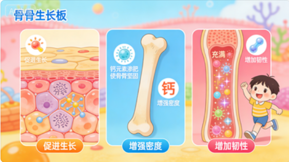 生长激素对儿童骨骼的保护,不止“促进生长”,而是涵盖“骨骼发育、骨骼密度、骨骼韧性”三个核心层面,是儿童骨骼健康的“隐形守护者”。很多家长只关注身高增长,却忽略了骨骼质量——即使孩子身高达标,若骨骼密度低、韧性差,也容易出现骨折、骨质疏松等问题,影响终身健康。